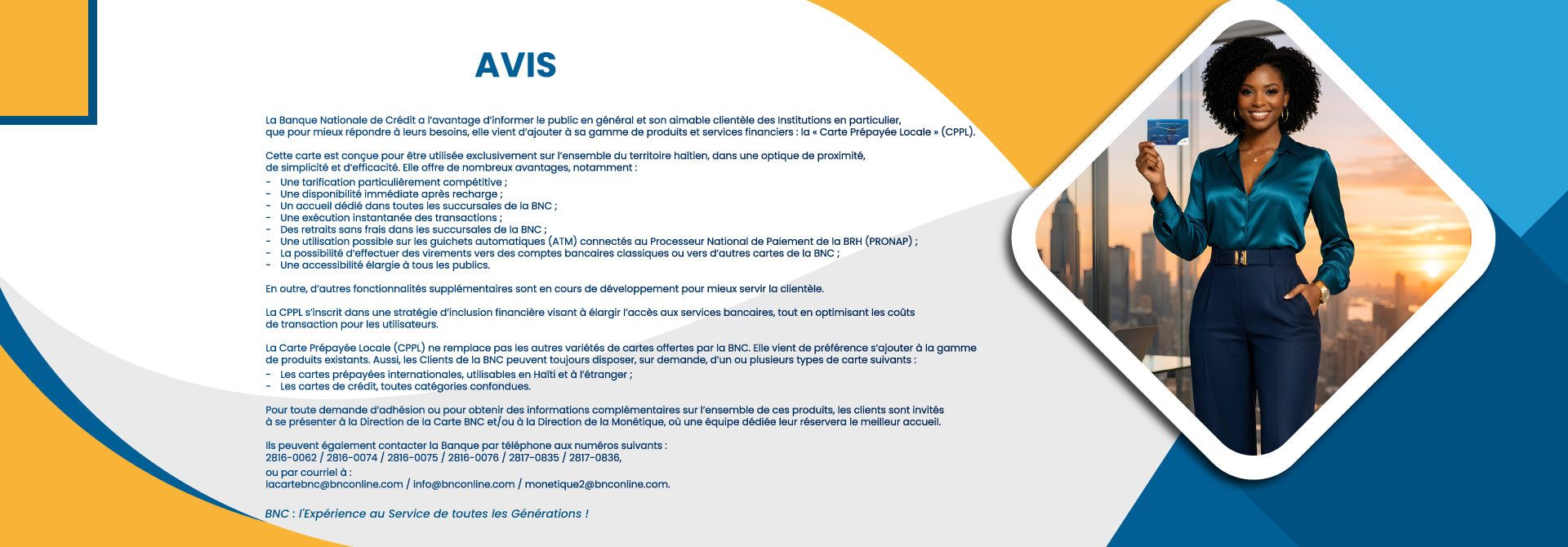 La Banque Nationale de Crédit (BNC) a l’avantage d’informer le public en général et son aimable